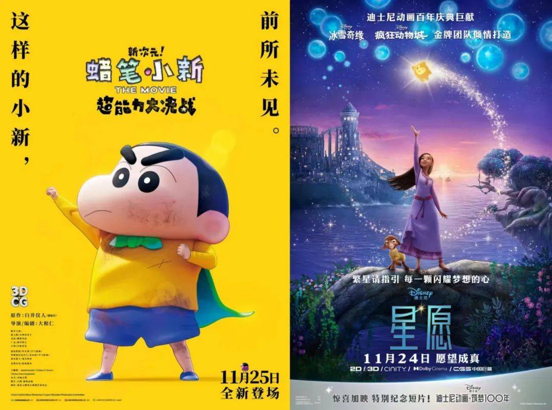 两部动画片《蜡笔小新剧场版》和迪士尼献礼大作《星愿》分别收获3367万和2531万,列第五和第六,最终票房应该都在5000万左右。在国人熟知的知名IP和大厂出品光环下,两片取得如此成绩,也可以说是热度乏善可陈了。