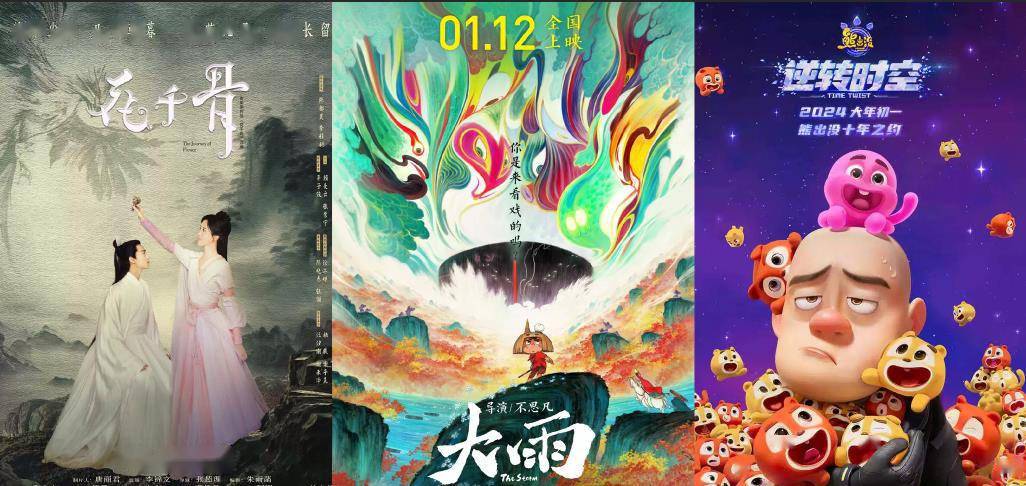 定档2024年1月26日,、执导,包贝尔、领衔主演,、、于洋主演。定档2024年2月10日大年初一,由执导,领衔主演。2024年2月10日大年初一。动画电影定档2024年1月12日,由《大护法》导演执导。