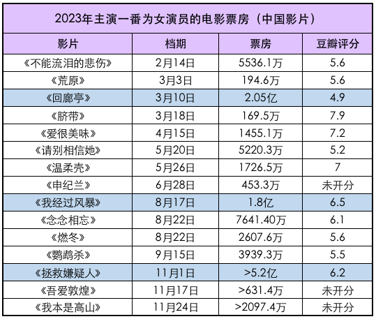 张小斐主演影片《拯救嫌疑人》票房破5亿,成为本月黑马;改编自“敦煌女儿”樊锦诗事迹,以及张桂梅校长经历的电影《吾爱敦煌》《我本是高山》先后上映;《热搜》《再见,李可乐》等展现女性社会身份的影片即将和观众见面……