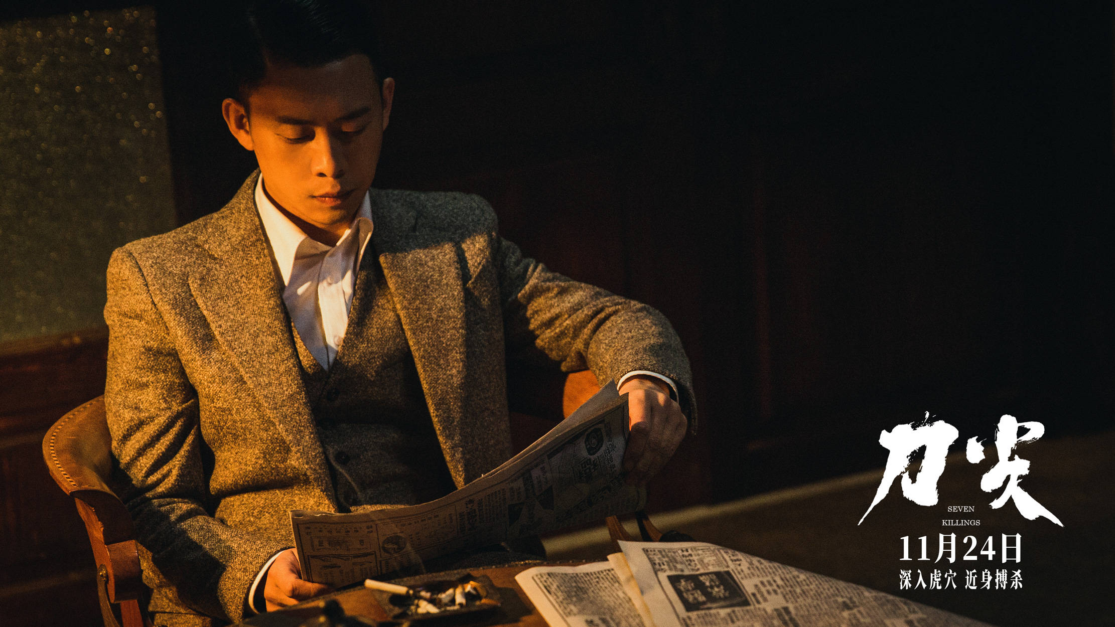 今日电影发布一条“突发新闻”,以“民国播音腔”为旁白,仿古早新闻播报的新颖方式,呈现了桂系密码专家白大怡在严密安保下竟遭一枪毙命,汪伪安保局通讯处处长金深水(张译 饰)与反特处处长李士武(沙溢 饰)深陷暗杀旋涡的悬案,瞬间将人代入到1940年波诡云谲的南京城 。