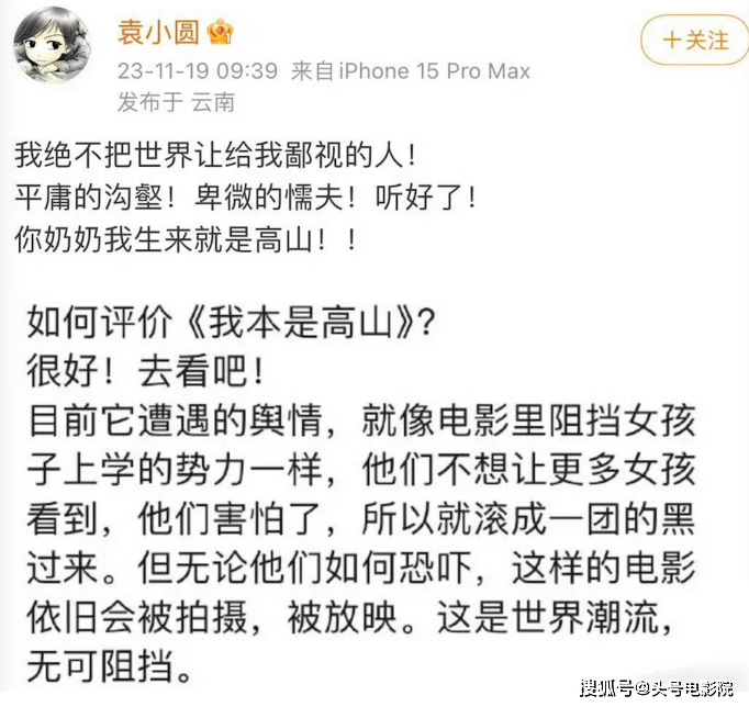 但《我本是高山》的编剧袁媛,在社交平台上用“梦幻泡影”的账号回应并没有回应争议点,而是有些失态了。