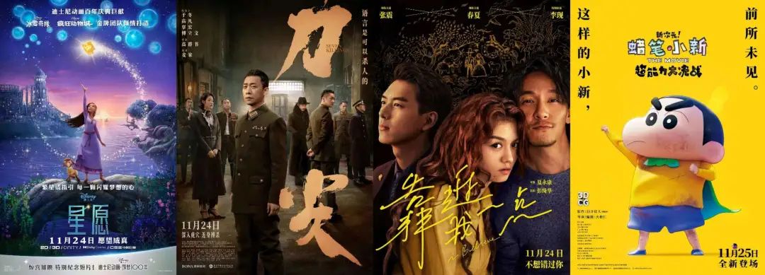 有一战之力的新片还有迪士尼百年献礼片《星愿》,高群书执导,张译主演的谍战片《刀尖》,张震、春夏、李现主演的爱情片《靠近我一点》,经典日本动画系列剧场版《蜡笔小新:新次元!超能力大决战》。