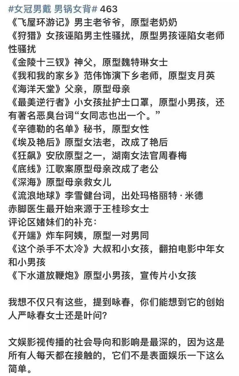 因此,如果我们放任导演编剧女冠难戴、男锅女背来造成性别对立,潜移默化地影响我们的认知,那么他们歪曲事实,颠倒黑白的“阴谋”可就更容易实现了。