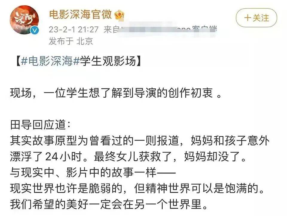 今年年初的电影《深海》就是个典型的例子,导演明确表示,这个故事的原型就是自己看过的一则报道。