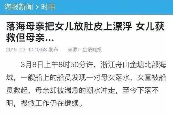 确实也能找到这则新闻,当时许多人猜测,母亲是为了保护女儿,才将她放在自己的肚皮上,最后女儿的得救让她松了一口气,因此精疲力尽的她才松手让自己卷入海底,让人感受到母爱的伟大。