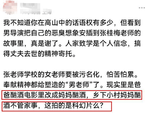 作为张桂梅饰演者的海清也处在风口浪尖,因为这部电影最大的投资方就是海清持股95%的公司,她应该是有很大的话语权的,结果却找了个无法共情女性的男导演,并且对方还是“导二代”,任由他和编剧将故事改得一团乱。