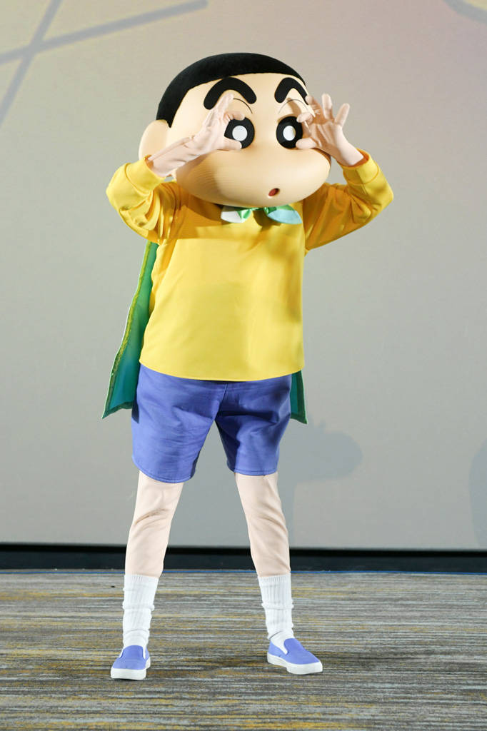 搜狐娱乐讯(山今/文 马森/图)11月18日,电影《蜡笔小新:新次元!超能力大决战》在北京举行首映,映后,蜡笔小新玩偶来到现场,与粉丝欢乐互动,并进行了可爱五连拍的小游戏。