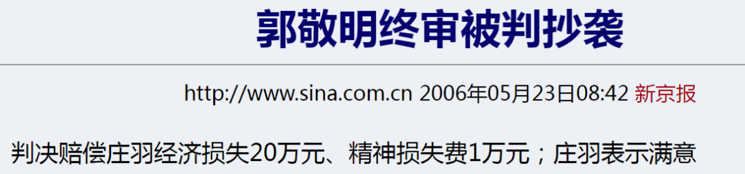 反过来,郭敬明的《梦里花落知多少》也有庄羽《圈里圈外》的影子,但法律一纸文书却宣判郭敬明剽窃成立。