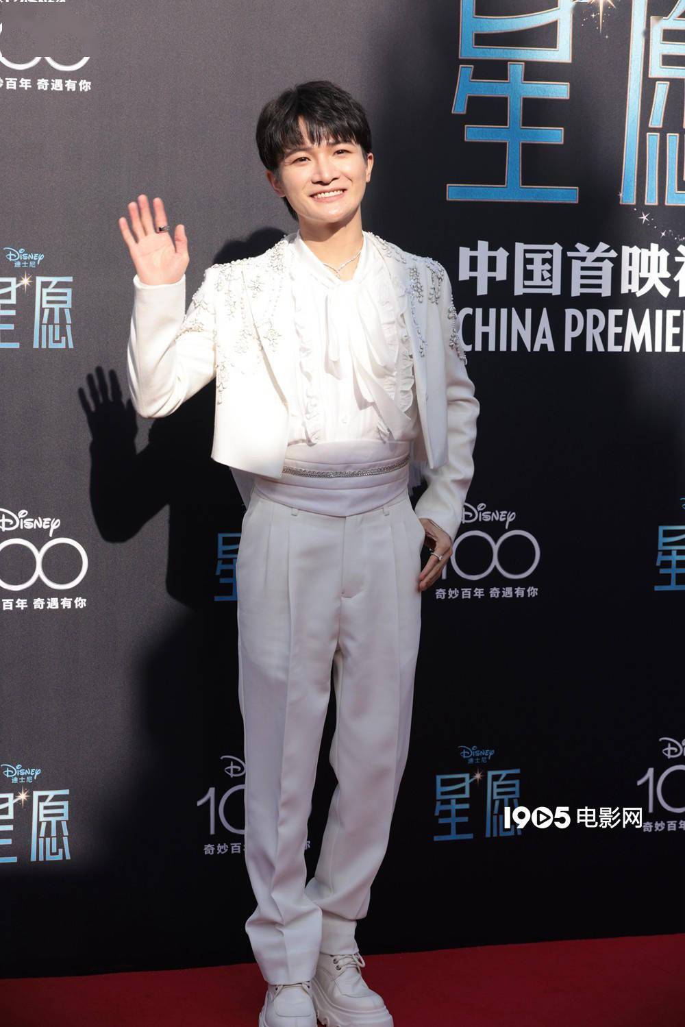 而为影片演唱主题曲的周深和张靓颖,则分别选择了浅色系的礼服。张靓颖身穿雾霾灰色礼服,裙身镶钻,璀璨夺目;周深一席白马王子的装扮,外套肩部也点缀着繁星装饰,乖巧又不失帅气。