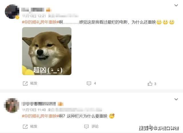 《你的婚礼》本身没有大笔投资和大腕明星,也不会让观众在观影时进行头脑风暴,更没有特别的教育意义,给人以常看常新的人生感悟。况且7.89亿的票房成绩已经是爱情电影能回本的最好成绩,重新在影院上映大可不必。不少影迷留言表示:是让你出第二季没让你重映。由此可见借用老电影赚取票房的行为显然不可行。