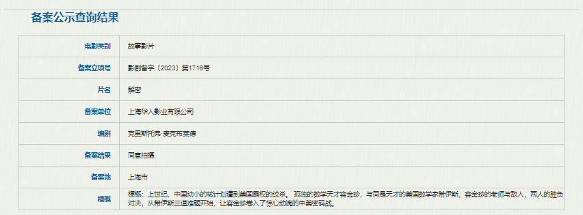 该片改编至小说家麦加同名小说,也是该文学作品首次被搬上大银幕。该片故事梗概:上世纪中国幼小的核计划遭到美国霸权的绞杀,孤独的数学天才容金珍,与同是天才的美国数学家希伊斯,容金珍的老师与敌人,两人的胜负对决,从希伊斯三道难题开始,让容金珍卷入了惊心动魄的中美密码战。