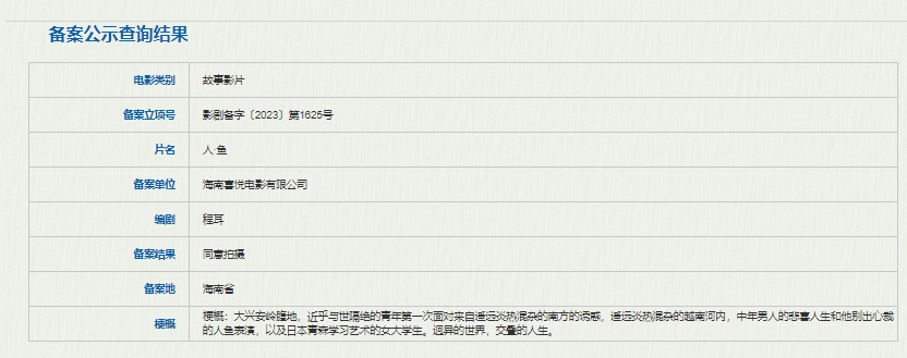 本次备案影片影片类型丰富,动画电影、纪录影片、科教影片备案数量相较上一季度有大幅增长。其中,真人电影中,有程耳、王一博《无名》之后再度合作的《人·鱼》,毕赣执导,易烊千玺、舒淇主演的《狂野时代》,陈可辛新片《酱园弄》,刘德华主演的《红毯先生》备受市场关注。动画电影中,《大鱼海棠叁》、《逃出大英博物馆》引人关注。