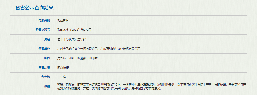 作为国内著名动画IP,时隔7年之后《喜羊羊与灰太狼》系列动画电影在2023年春节档重启。春节期间上映的《喜羊羊与灰太狼之筐出未来》,取得1.6亿元票房,仍然获得了许多亲子观影群体的认可。新片或将继续登陆春节档。本次电影编剧吴潮威、刘维、耿漪淼、刘泽敏,都曾参与《喜羊羊与灰太狼之筐出未来》的创作。