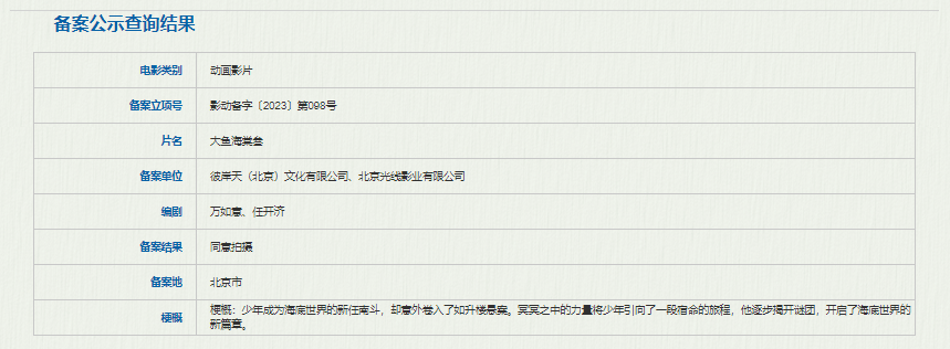 影片由北京光线影业有限公司、天津市好传文化传播有限公司联合备案。双方此前合作过不思凡动画长片首部作品《大护法》。此前,好传文化还出品过《大理寺日志1、2》、《雾山五行》等豆瓣高分国产动画剧集。