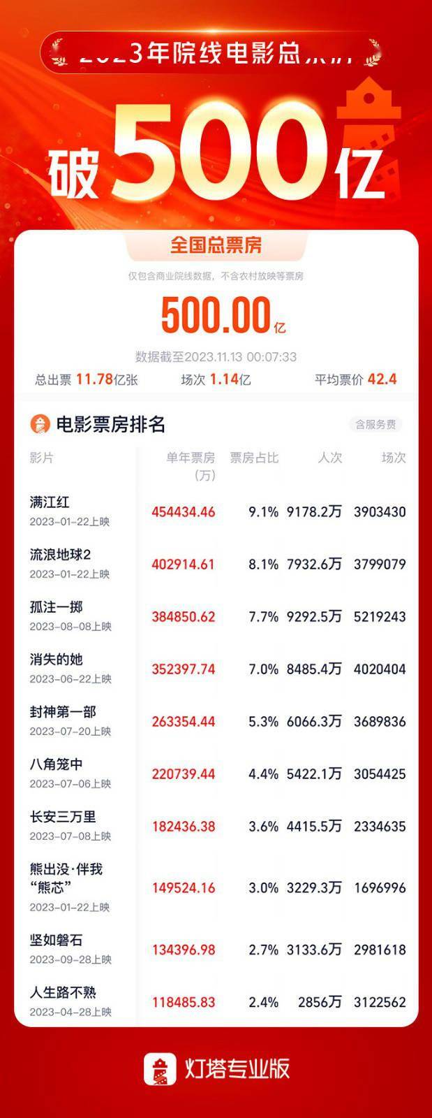 原标题:2023中国电影总票房破500亿!你今年看了几部?
