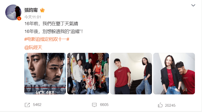 本片是两人在《我在垦丁天气晴》后,暌违16年再次合作。10月11日中午,张钧甯发博晒图@阮经天称:“16年前,我们在垦丁天气晴,16年后,别想躲过我的‘追缉’!”随后,阮经天发博晒图回应:“16年前的我们青春美好友谊长存,16年后的我们全力‘追缉’!”