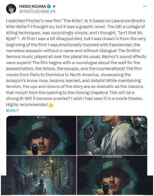 原标题:“陀螺”、小岛秀夫盛赞大卫·芬奇新片《杀手》