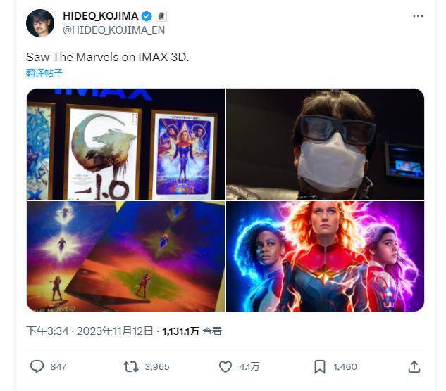 小岛秀夫同样发长文称赞了芬奇的新作,随后他还晒出观看《惊奇队长2》观影照,但并未加以夸赞分析。这也引来许多网友调侃,“看来是不知道怎么夸《惊奇队长2》”。