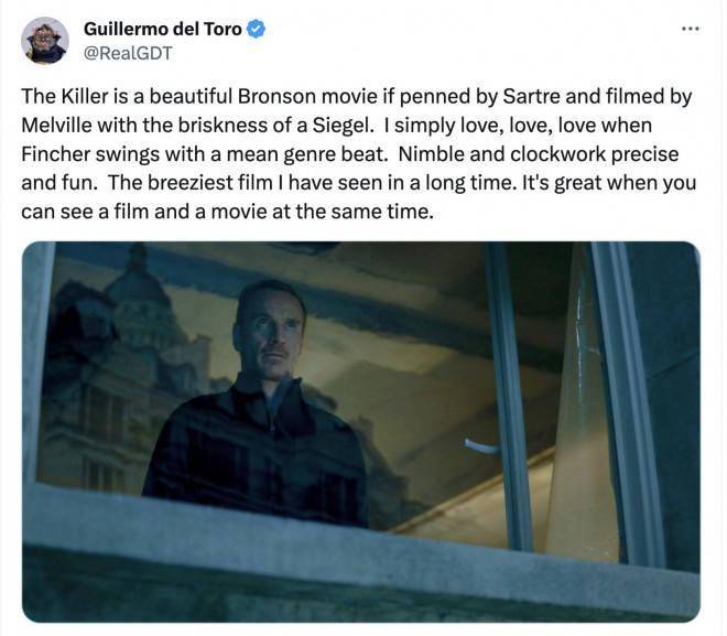 吉尔莫·德尔·托罗表示,“我就是单纯的很爱这部电影,芬奇的类型节拍非常出色,他拍得灵巧、精准而有趣。这是我这么长时间以来看过最愉悦的电影。能看到这样一部兼具艺术性和娱乐性的电影真是太棒了。”