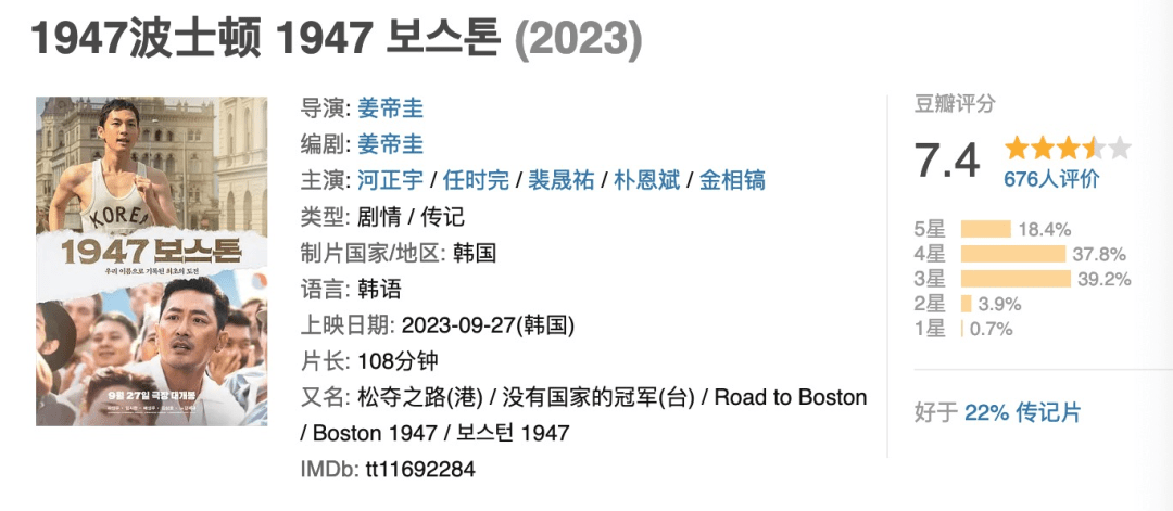 老导演姜帝圭执导的真人传记片,也是运动题材,河正宇、任时完共同出演。