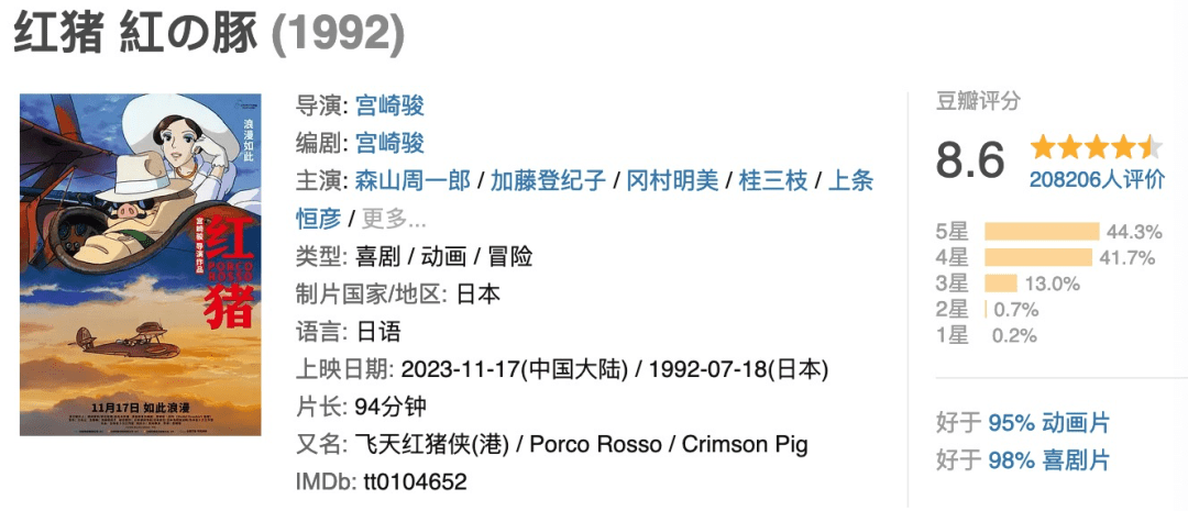 毕竟,宫崎骏电影的质量还是很有保证的,包括这部《红猪》,可看度也是很好的。