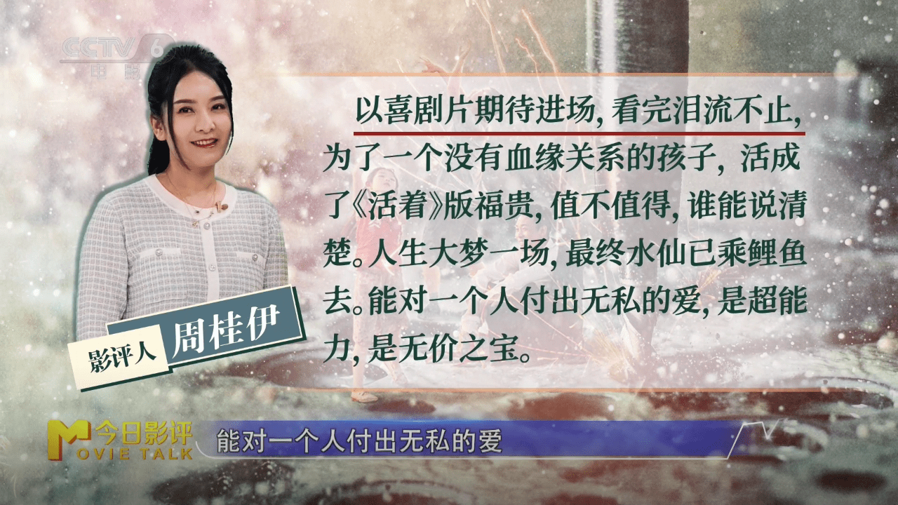 影评人周桂伊也给出了很高的评价:“以喜剧片期待进场,看完泪流不止,能对一个人付出无私的爱,是超能力,是无价之宝。”