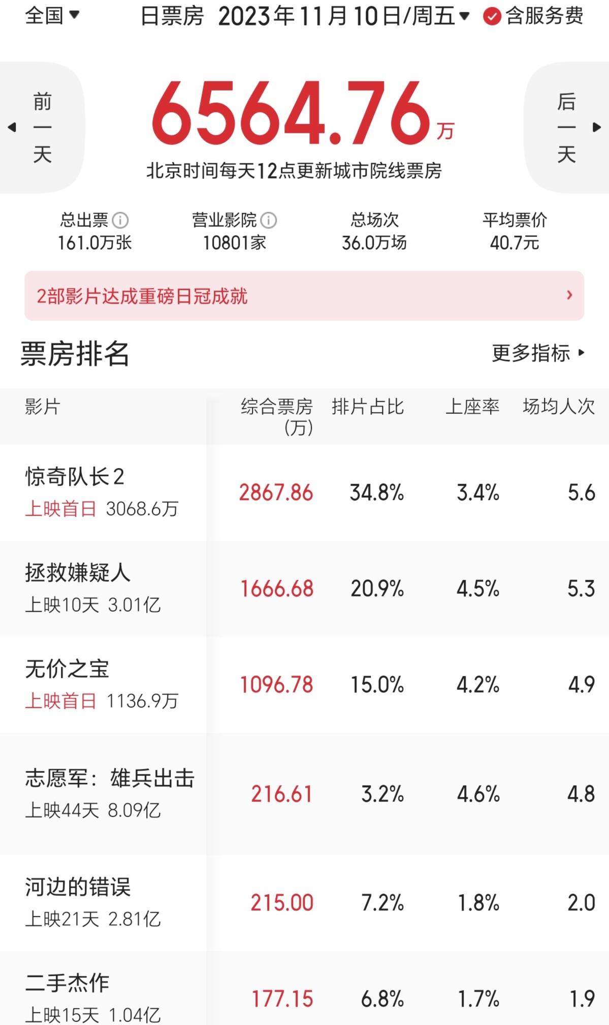 原标题:《惊奇队长2》首日票房不足3000万 张小斐《拯救嫌疑人》累计破3亿