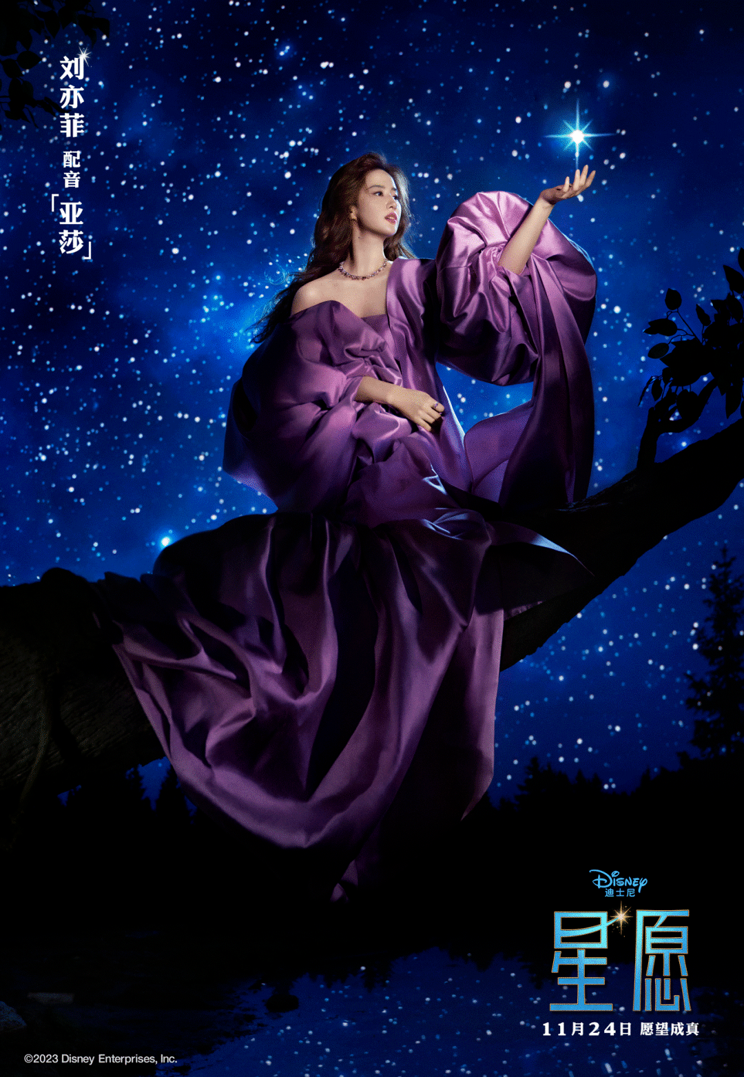 由中影/华夏发行,华特迪士尼动画工作室出品的动画电影《星愿》将于11月24日登陆中国内地影院,影片中文配音阵容于今日公布:刘亦菲将为亚莎(Asha)配音,于适则为亚莎的伙伴山羊小瓦(Valentino)献声。