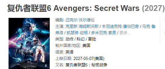 不过,有一个坏消息是:看看《复仇者联盟6》的档期,要到2027年5月去了,也就是说:最快还要等4年!
