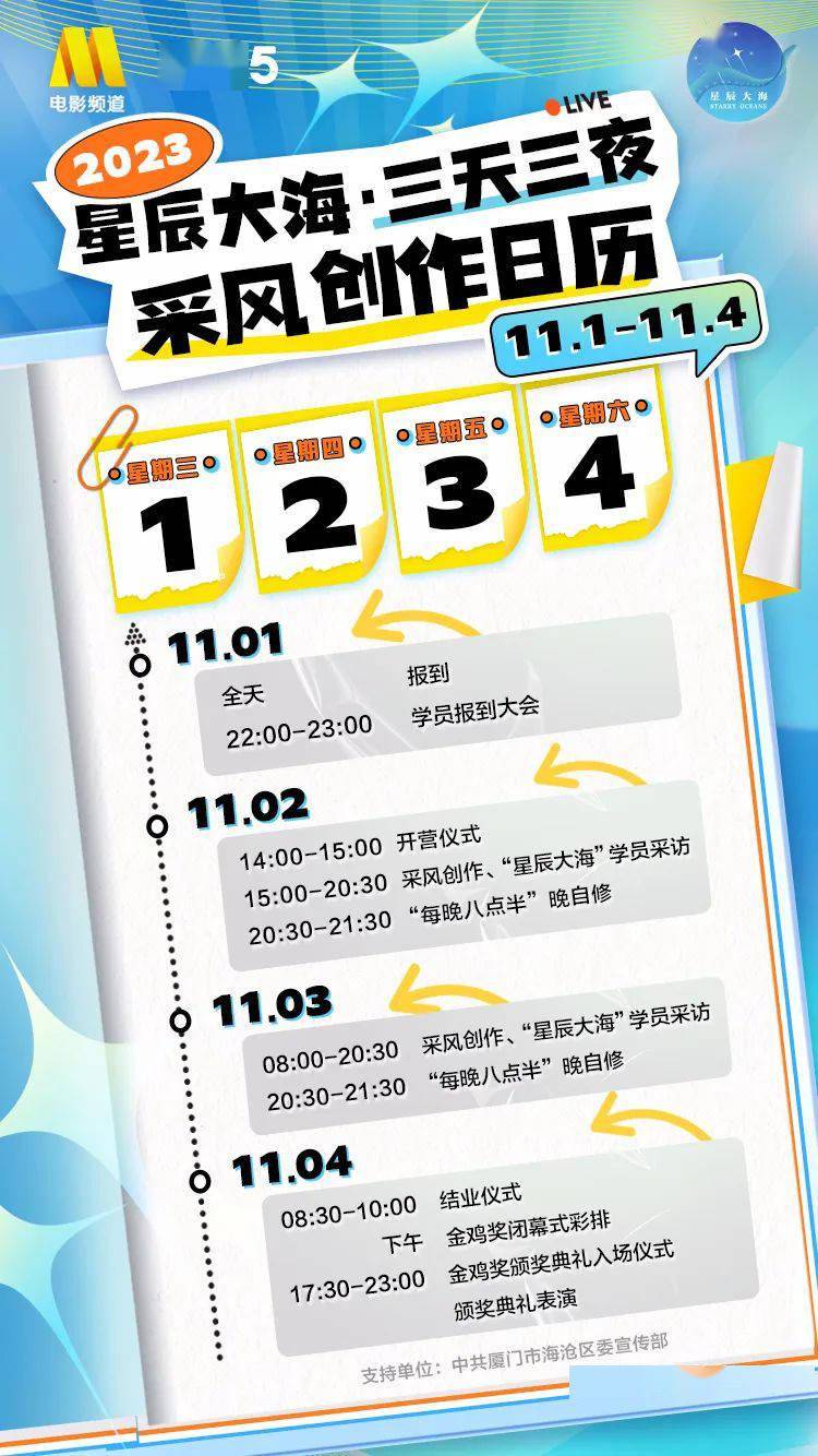 采风活动的全过程,都将通过电影频道融媒体直播生活化纪实播出,更多专家评委将亮相直播间,同广大网友一道对青年演员的德艺表现展开实时点评与考核。11月4日晚,这些通过全民考核认证的“星辰大海”青年演员,也将集体出席第36届中国电影金鸡奖颁奖典礼,敬请期待。
