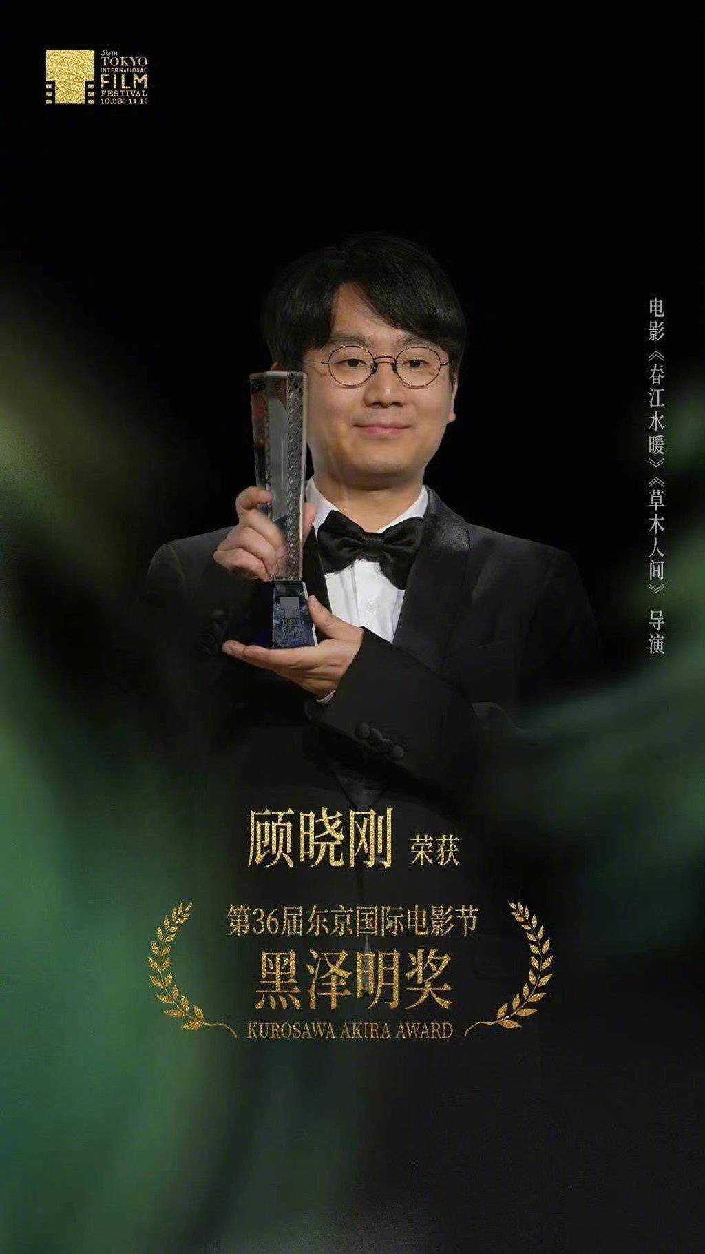 10月31日,导演顾晓刚也凭借这部新作《草木人间》摘得了“黑泽明奖”,成为有史以来最年轻的“黑泽明奖”获得者,也是继和后第三位获得此奖项的华语导演。