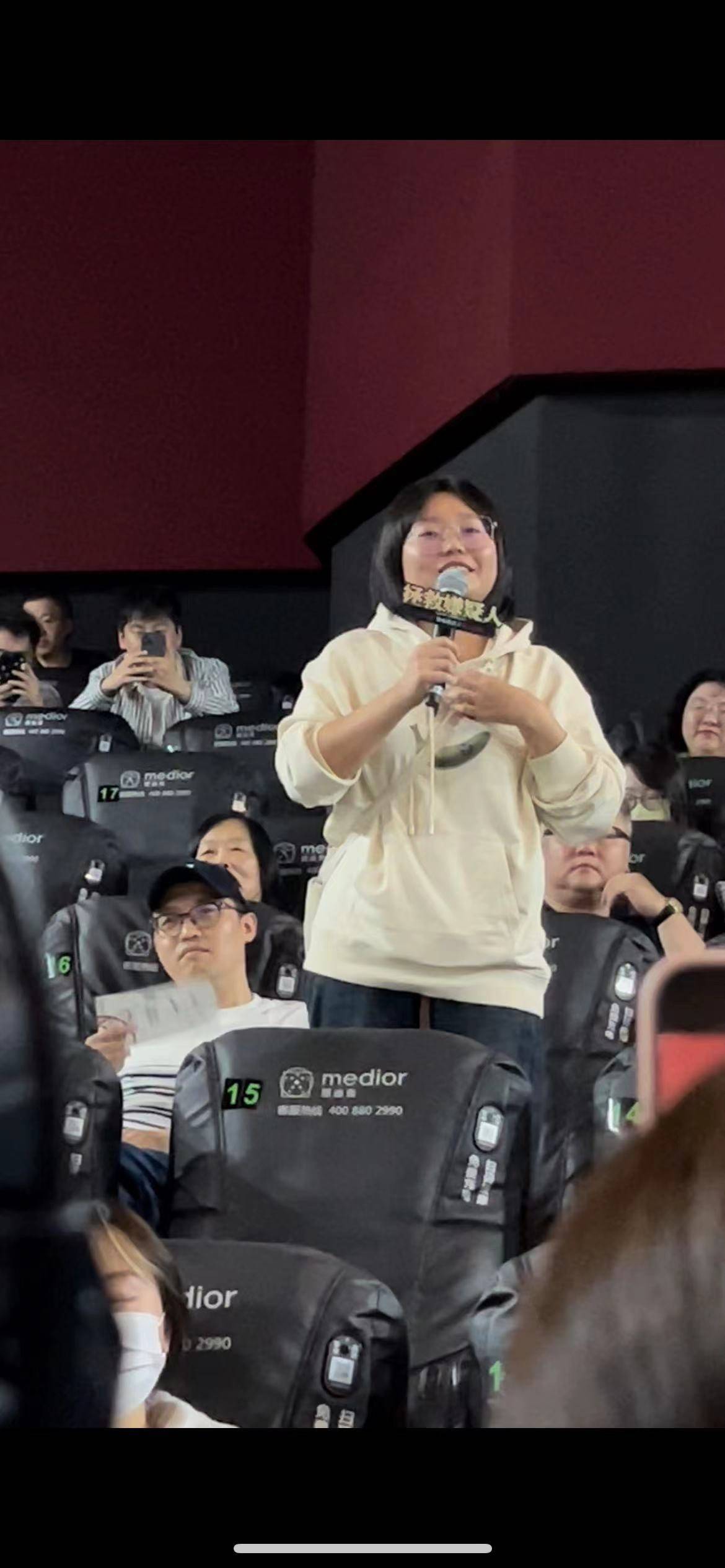 李雪琴也来到了现场,她说今年看了很多恐婚恐育的电影,看完《拯救嫌疑人》觉得有女儿也很幸福,“我相信今天大家看完这个电影之后,都会对电影中两位母亲,包括扮演者两位姐姐产生由衷的敬意。”