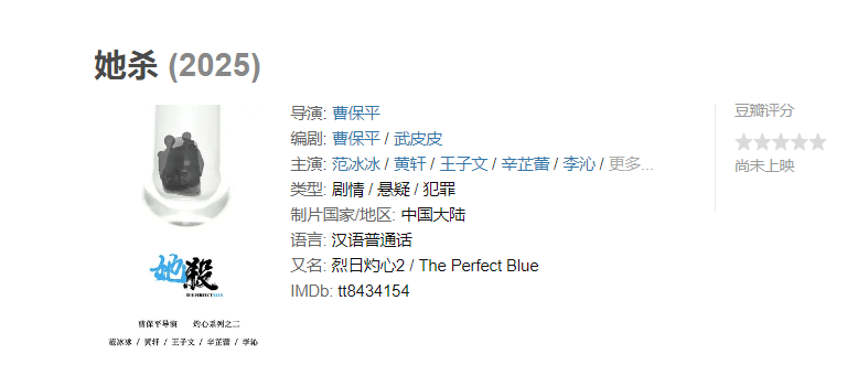 不过我看豆瓣上在《她杀》的下面标注了一个2025,很有可能是在暗示,到了2025年这部电影会与观众们见面。