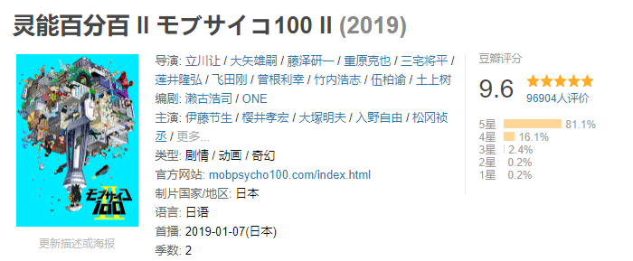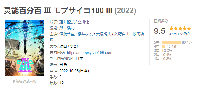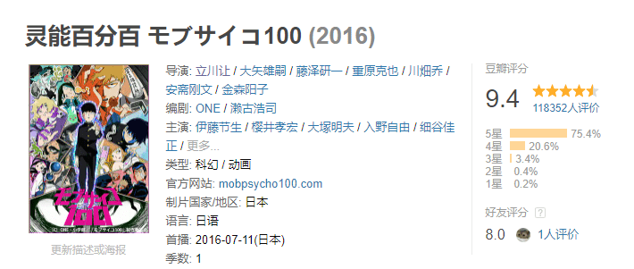 而他导演的《灵能百分百》更是全系列豆瓣9分 的水准。