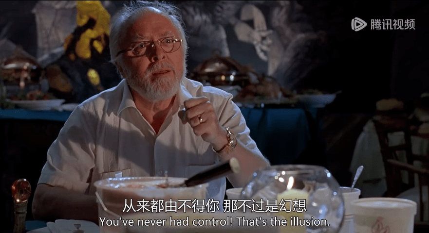 《侏罗纪公园》中,亿万富翁发现计划失败,恐龙逃脱控制的时候。