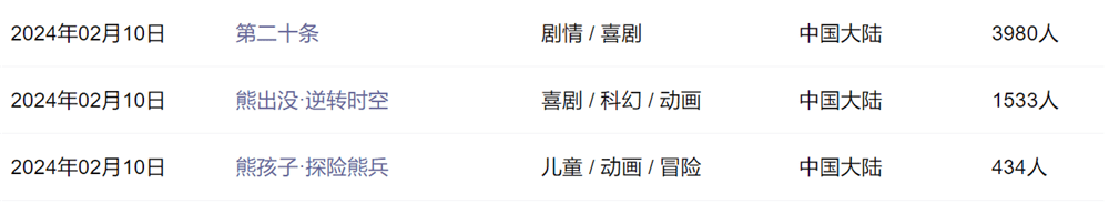 目前也就张艺谋的《第二十条》,《熊出没·逆转时空》和《熊孩子·探险熊兵》三部电影定档,其他影片等待官宣,话说你们最期待哪一部?(撰文:小二)