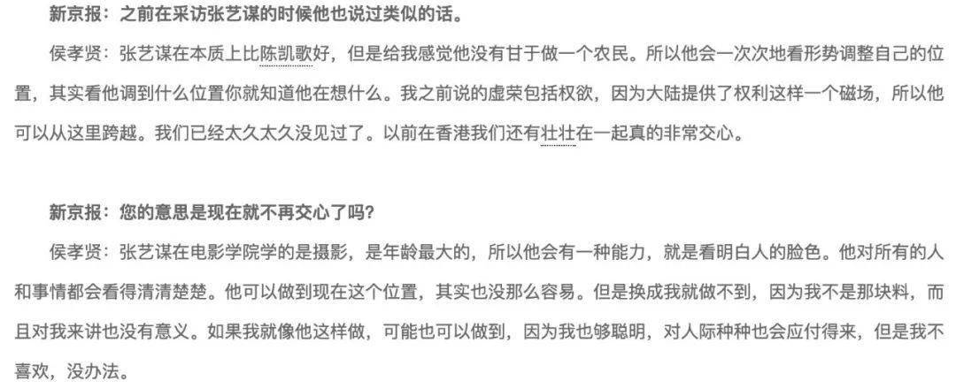 十几年后,张艺谋带着商业大片《英雄》,来到台湾与侯孝贤碰面。