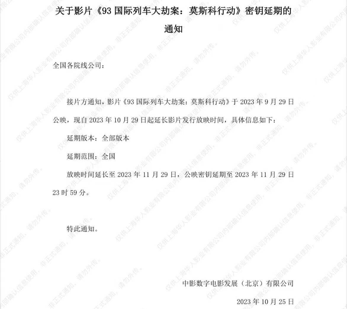 原标题:电影《莫斯科行动》密钥延期 延长上映至11月29日