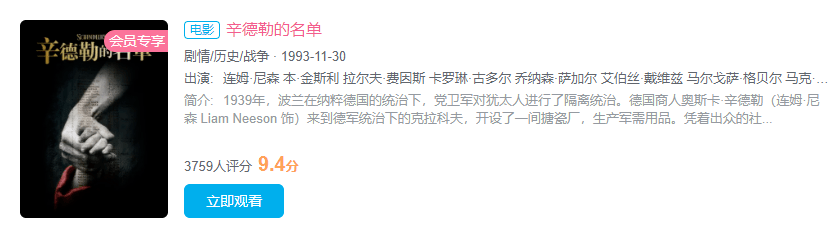 如果站在客观的口碑角度上看,《辛德勒名单》早已经接受了时代与审美的考验,在IMDB上评分8.9分,国内豆瓣高达9.5分,几乎是一部完美的“零差评”电影,也从未在内容、情节上有过翻车,至少在过去30年中,《辛德勒名单》始终是一个丰碑式的电影,如今终于被打破了。