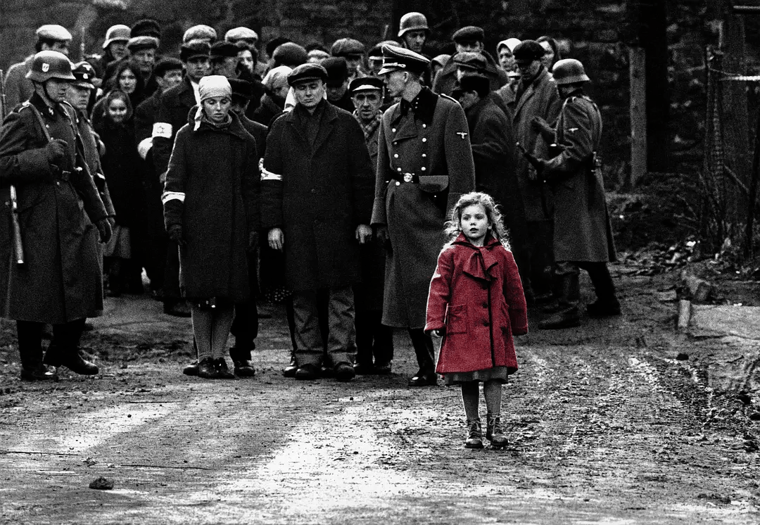 其中影片中一些名场面,至今还被人津津乐道,比如通篇黑白影像中那个红色衣服的小女孩,成为电影史最伟大的影像创造之一;比如屠杀犹太人的血腥悲壮场面;比如纳粹连续数枪打不出子弹带来的恐惧和压迫。