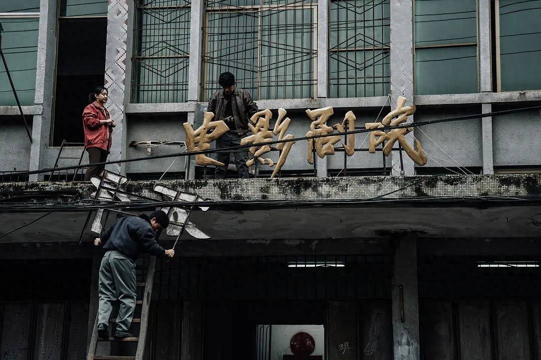 此外,导演个人的一些迷影趣味和关于电影本体的指涉在影片中出现与影片本身内容形成割裂。如拆卸电影院招牌的过程中,写有“电影”二字的招牌没有被接住之间摔坠在地,以及从局长口中说出的关于电影院和电影的评论,从影片整体叙事表达而言过于突兀。