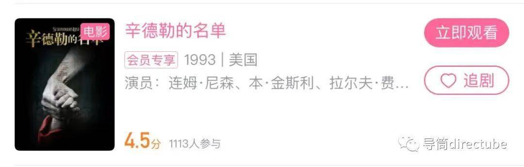 豆瓣评分目前是9.5。今年也是《辛德勒的名单》公映30周年。