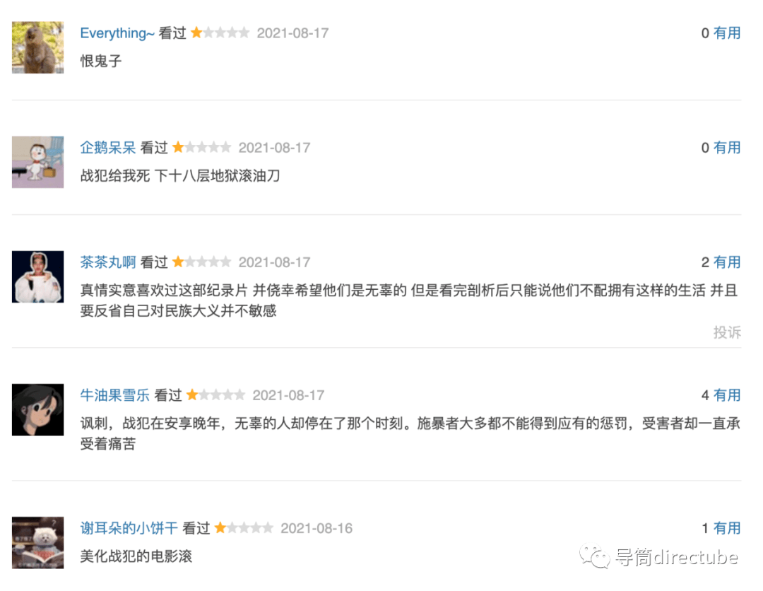 虽然也有网友解释《人生果实》中的老人并未来到二战中国战场,而是很快从海军退役,但以两方战争亲历者为主角形成的强烈对比,还是引导了大规模网友对《人生果实》进行一星差评,以让《三十二》排名完成超越。