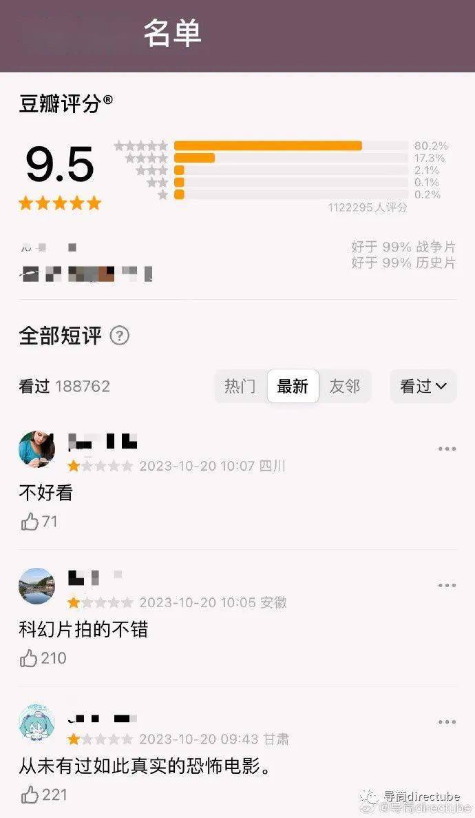 10月20日下午,电影《辛德勒的名单》豆瓣评论区涌入一批一星差评,且获得大量点赞。