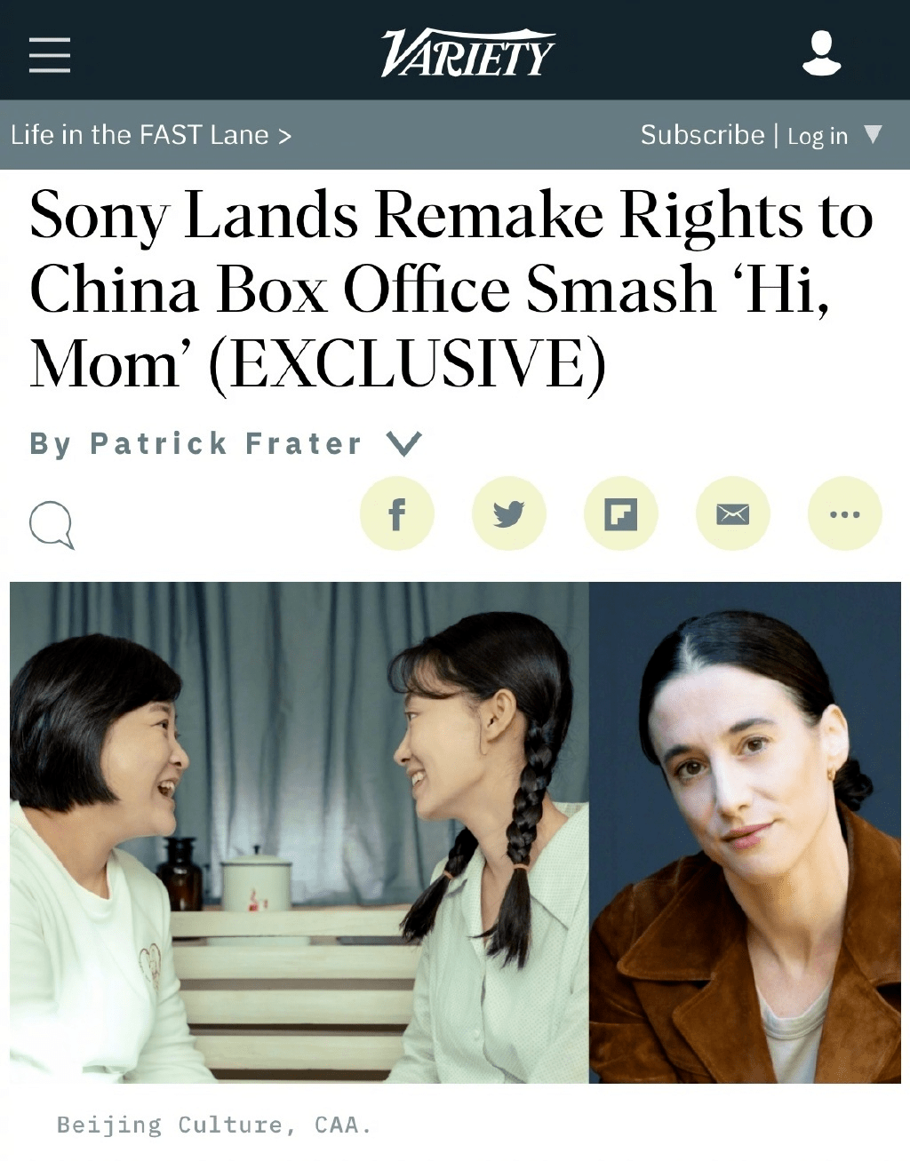 据《综艺》独家报道:索尼影业拿下翻拍权 ,宣布把2021年国产喜剧片《你好,李焕英》拍成一部英语版。同时,原版导演贾玲将担任执行制片人。