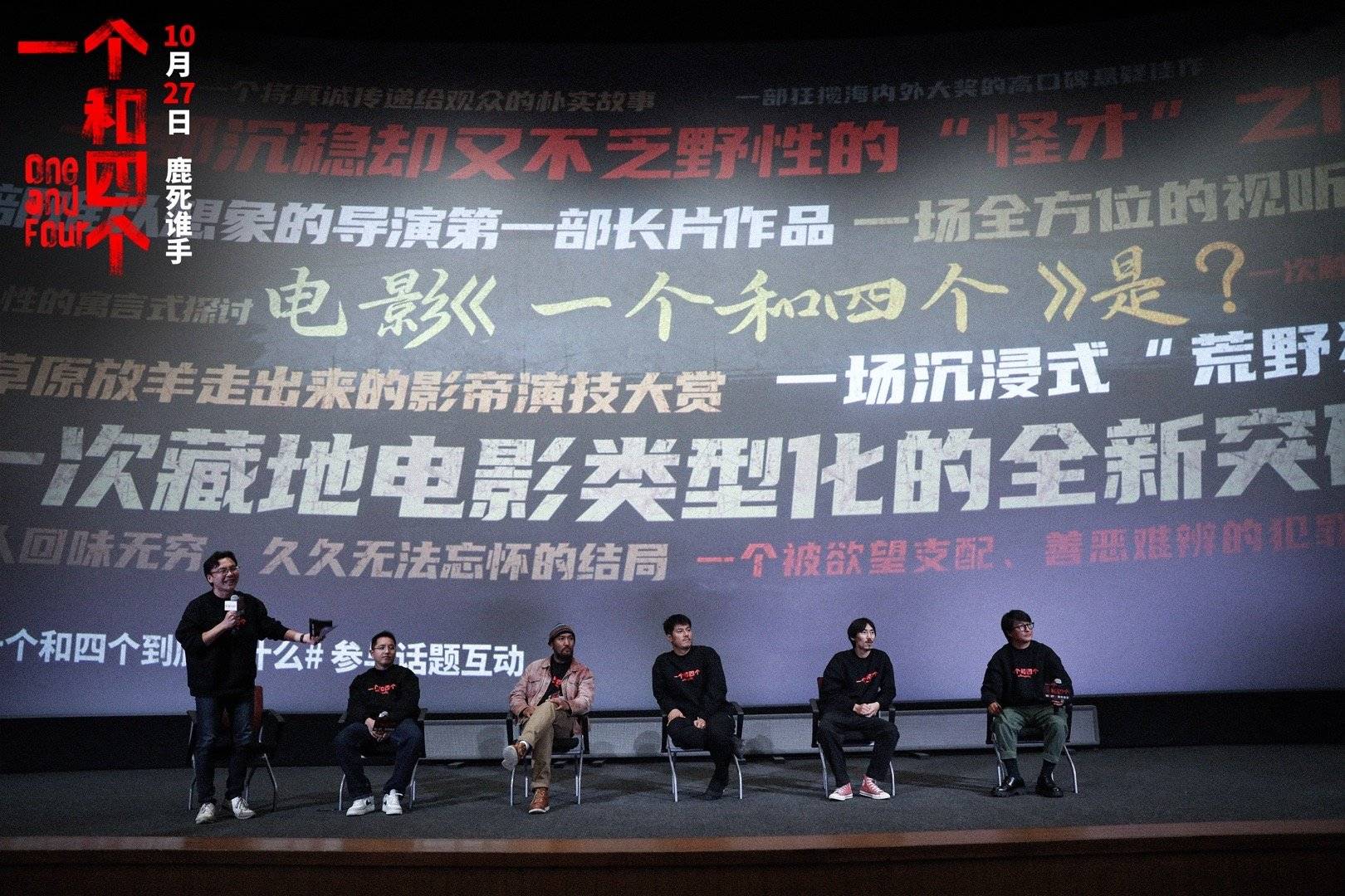 搜狐娱乐讯(山今/文 玄反影/图)10月20日,电影《一个和四个》在北京举行首映,导演久美成列,主演金巴、王铮、更旦等主创出席映后见面会,和观众交流互动。