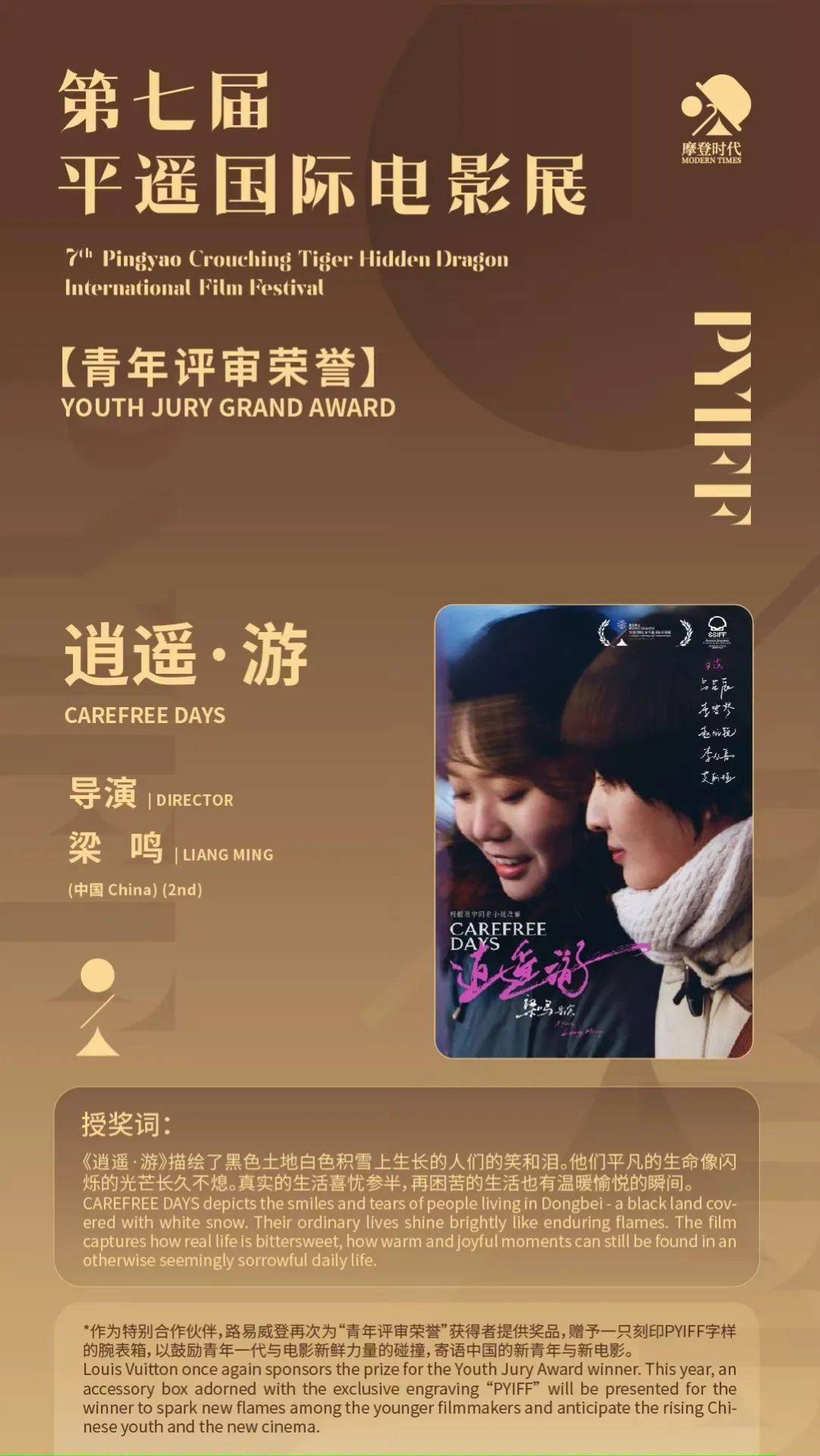 此外,《逍遥·游》是一部关于女性、讲述女性生命力的电影,充满了力量和温暖动人的情感表达,其导演梁鸣也凭这部电影在本届电影展获得了“青年评审荣誉”。