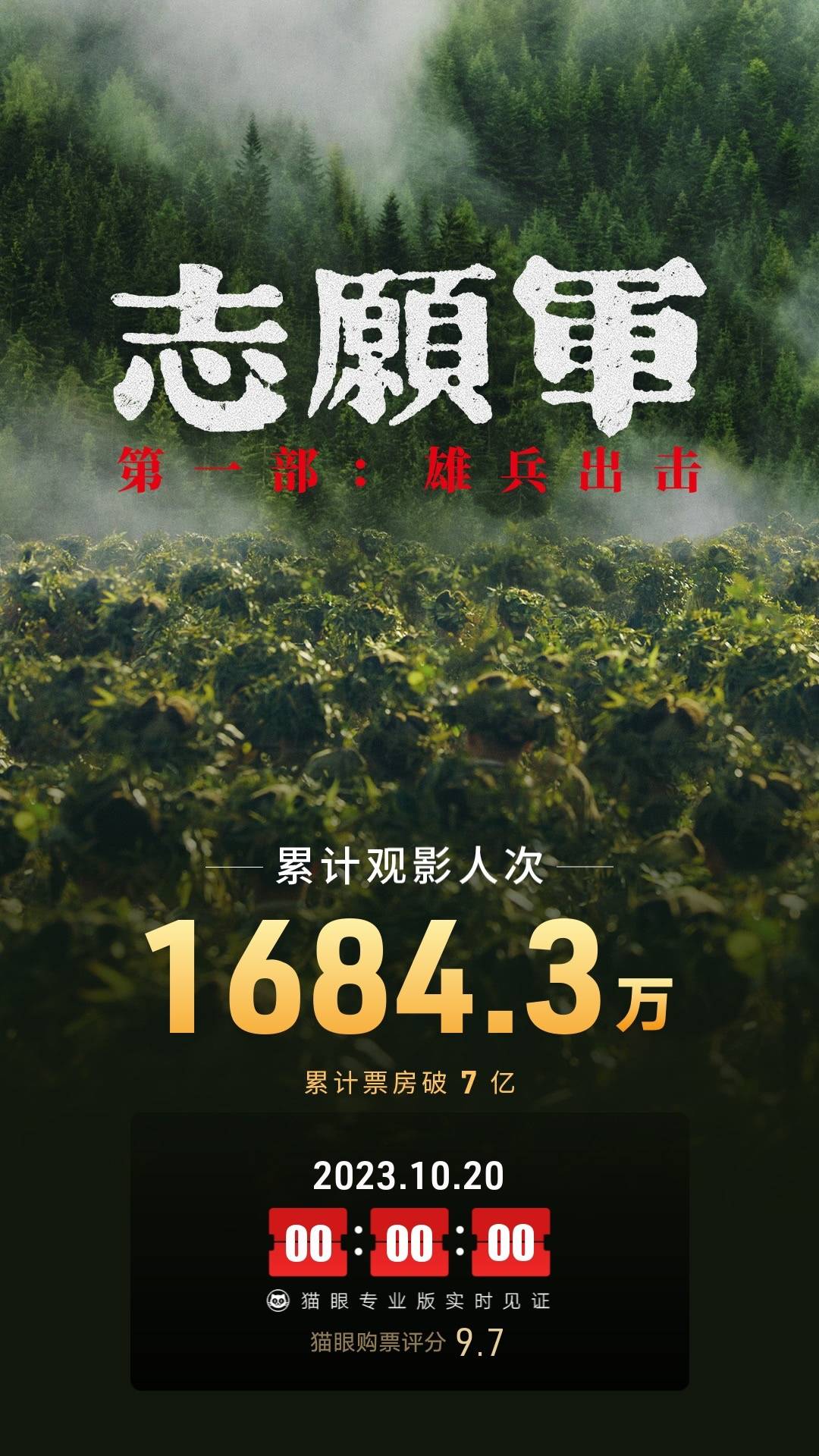 原标题:《志愿军:雄兵出击》上映第23天破7亿 暂居2023年度内地电影票房榜第二十