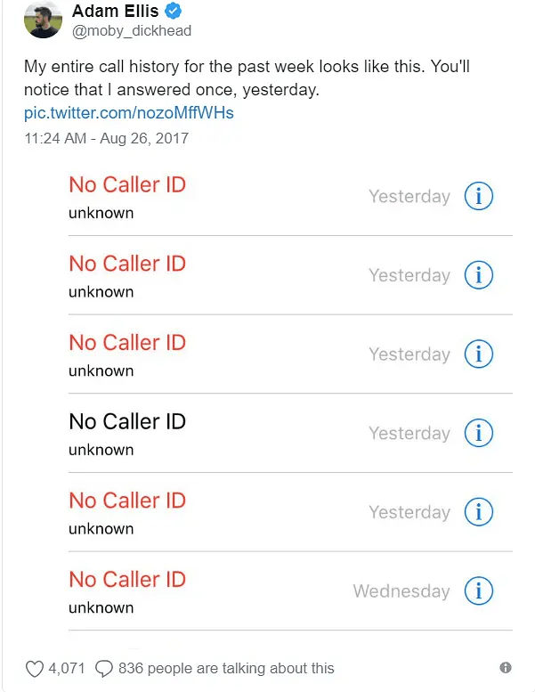 后来则变成未知来电。