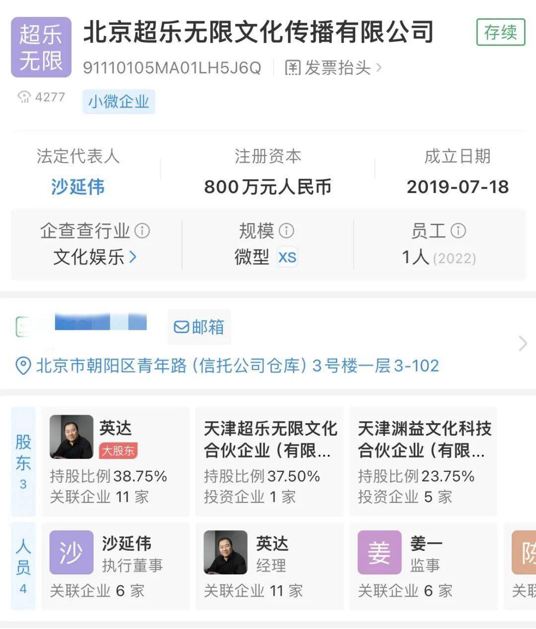 根据企查查APP显示,北京超乐无限文化传播有限公司大股东为内地知名演员、导演英达。该公司登记备案,由《独行月球》导演张吃鱼担任编剧的《逃出大英博物馆》市场关注度相对更高。